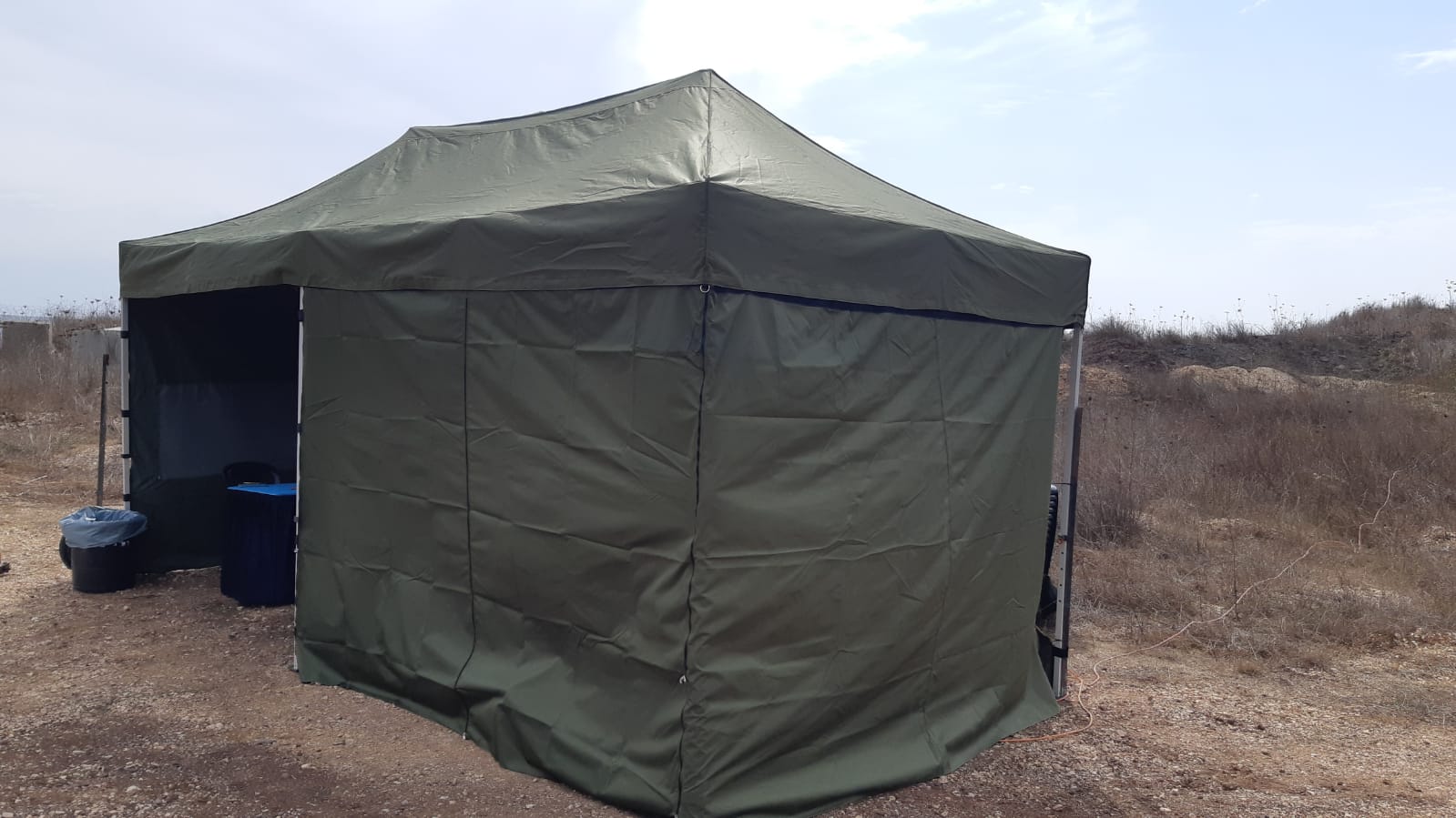 בנוי משלדת מתכת קשיחה בקוטר 32×32 מ"מ עם ציפוי אנטי חלודה, עמיד בכל תנאי מזג האוויר. מתאים לאירועי חוץ, שווקים, קידום מוצרים ולגינה. ניתן להוסיף גג וקירות בהתאמה אישית.